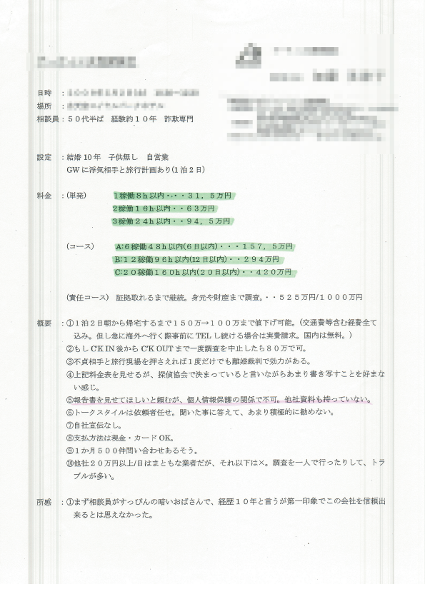 この業界は、100%前料金で、支払いをしてもきちんとした調査をしてくれなかったり、納得の結果が得られなくても返金されないケースがほとんどです。