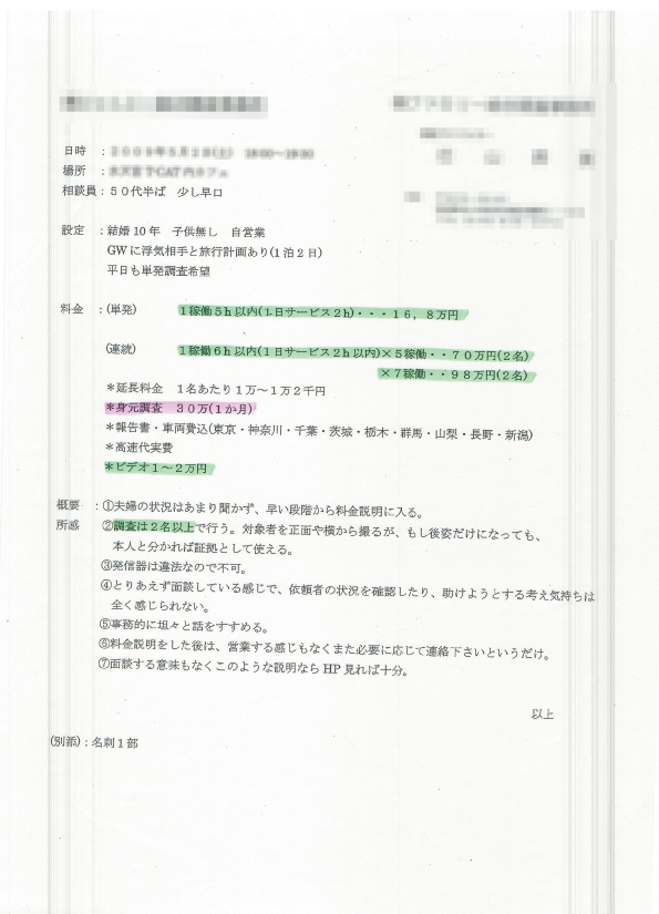 当社では、大手探偵社の料金を調べ、 必要以上に経費をかけずに調査料金を抑えるように努力しています。